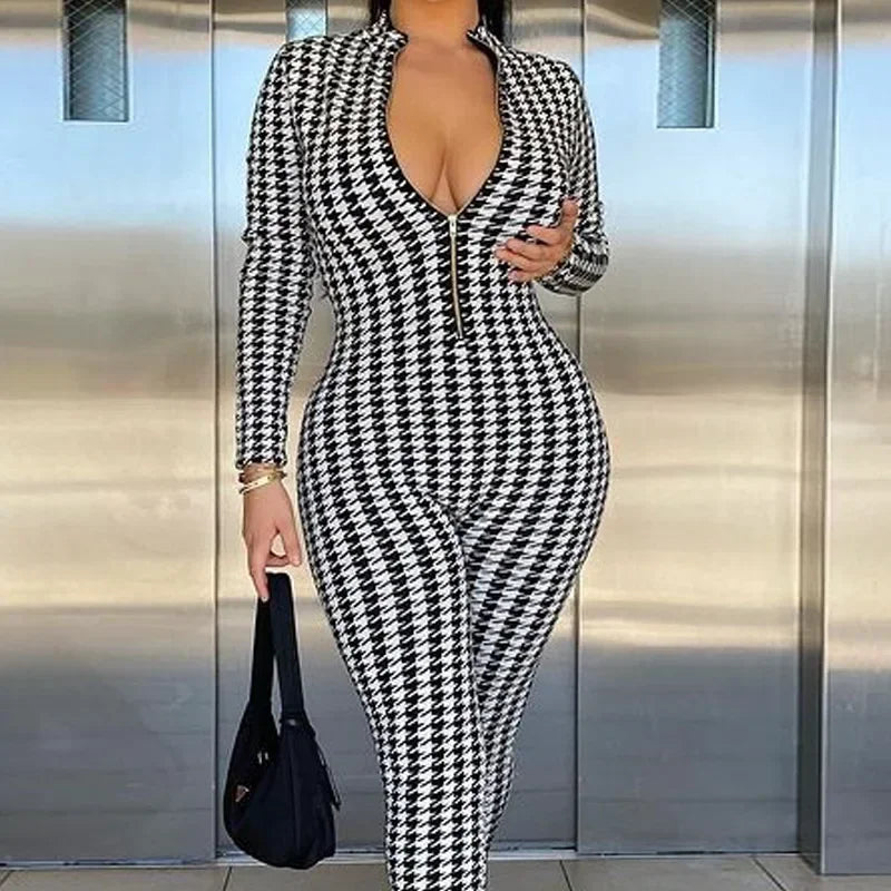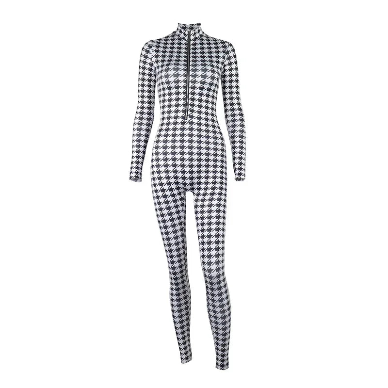Long Sleeve Printed Jumpsuit. Bodycon. Stretch