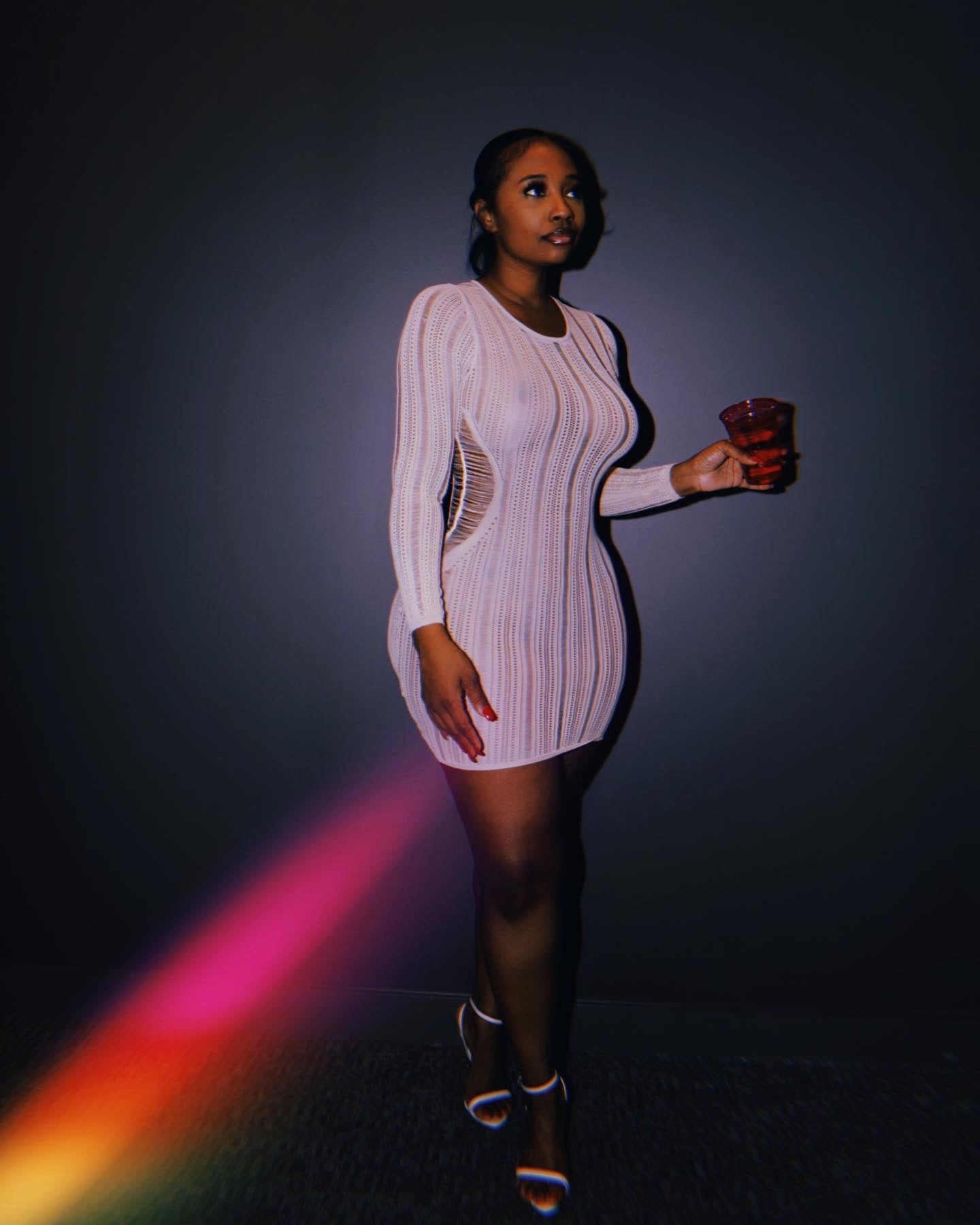Nude Knitted Mesh Long Sleeve Mini Dress