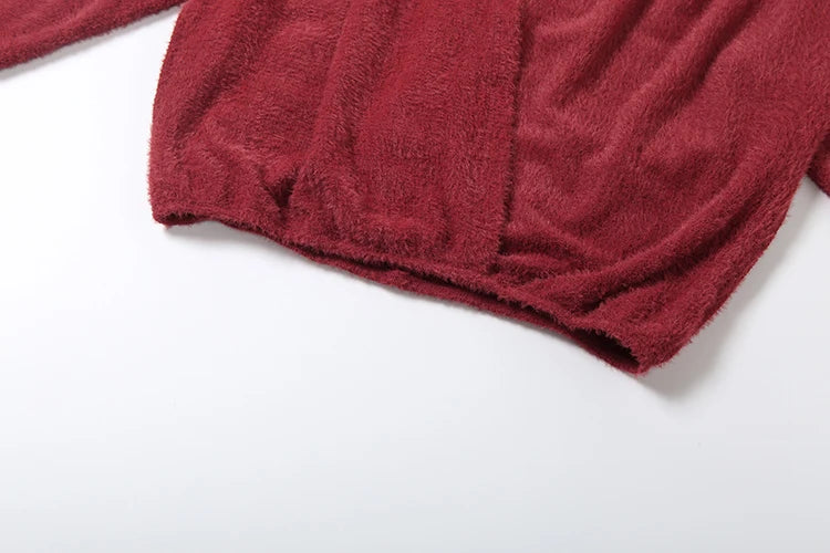 Deep V-neck Hooded Sweater. Lantern Sleeves