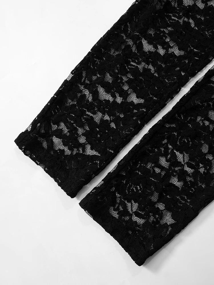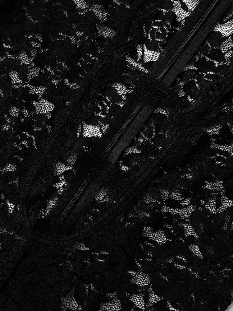 Sheer Lace Deep V Neck Jumpsuit. Stretch